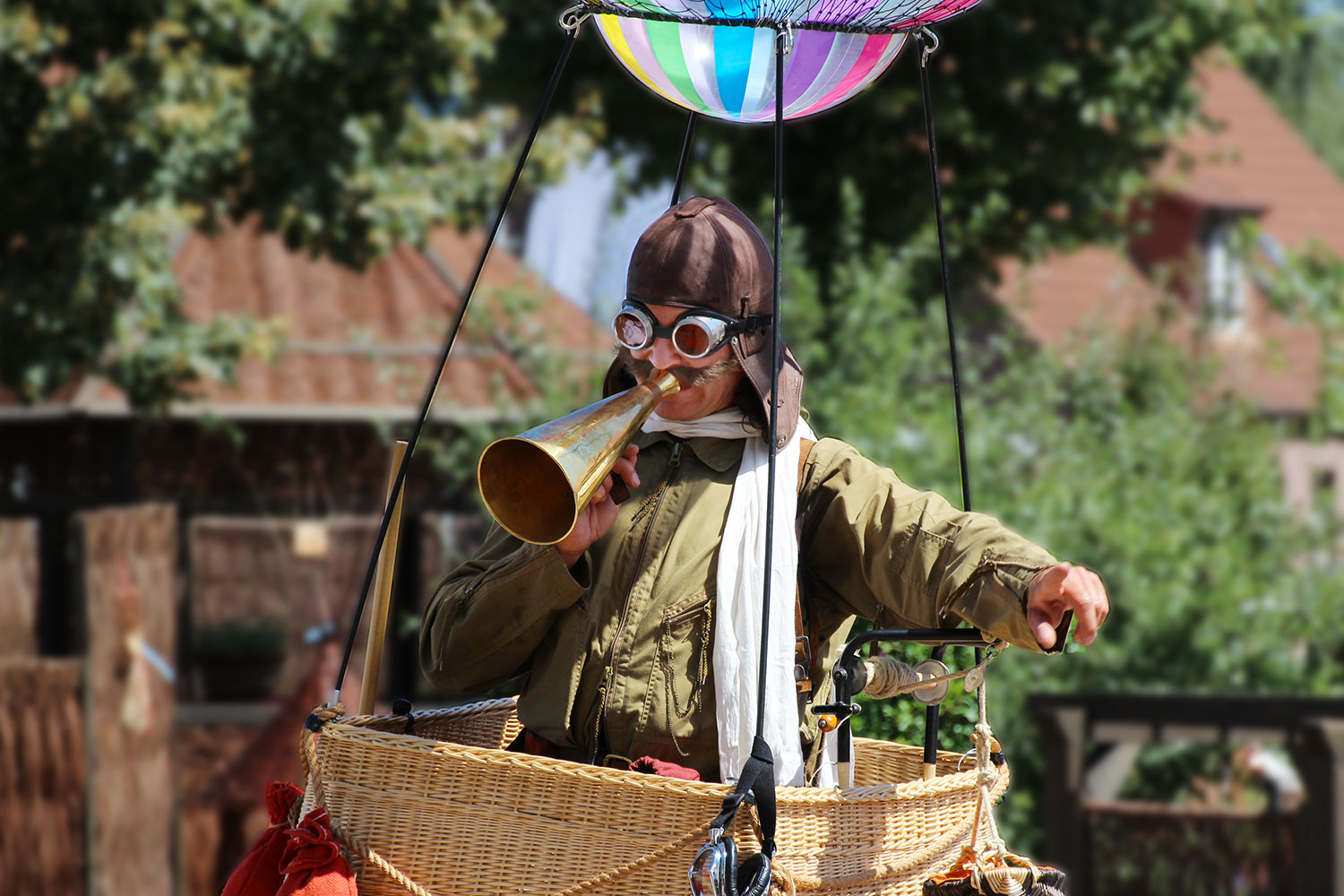 so schwebt er, der „alte“ Pionier der Lüfte hoch über den Köpfen des Publikums mit Tatendrang und Wortwitz herum.